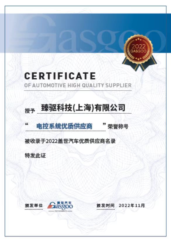 2022年12月8日,由蓋世汽車主辦的2022 第三屆汽車電驅動及關鍵技術大會在上海成功落幕。臻驅科技憑借行業領先的產品研發能力、自主可控的產業化實力和卓越優質的產品服務能力,被評為「2022蓋世汽車電控系統優質供應商」,并入選「2022蓋世汽車優質供應商名錄」。